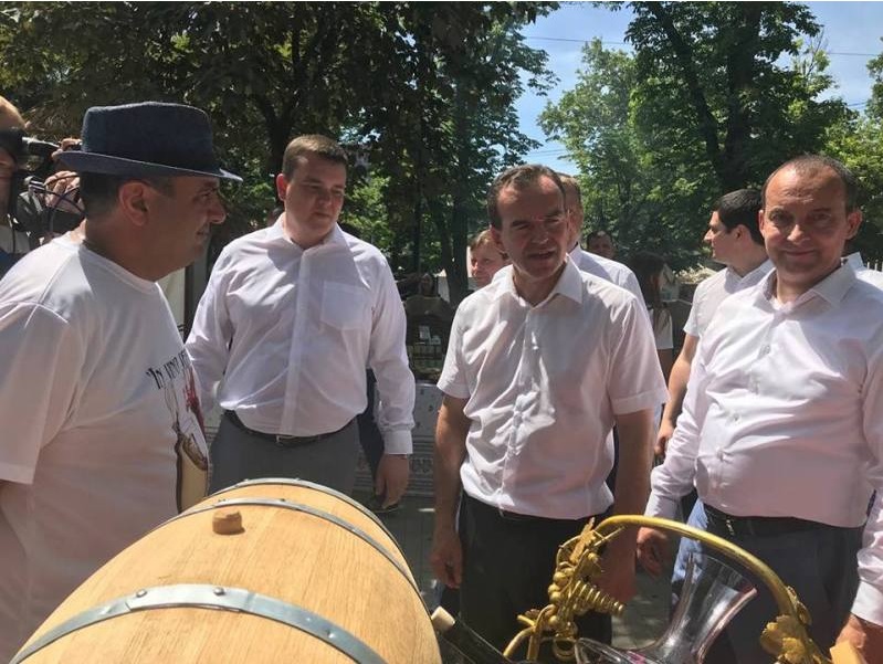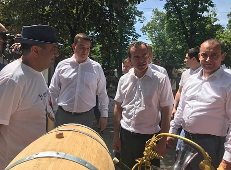 В ходе мероприятия ейский курень осмотрел губернатор Кубани Вениамин Кондратьев. Его приветствовал исполняющий обязанности руководителя муниципалитета Иван Савин, депутат ЗСК Сергей Белан. Глава региона отметил развитие виноградарства в самой северной точке края и пожелал дальнейших успехов, в том числе в новом проекте - винном туризме.
