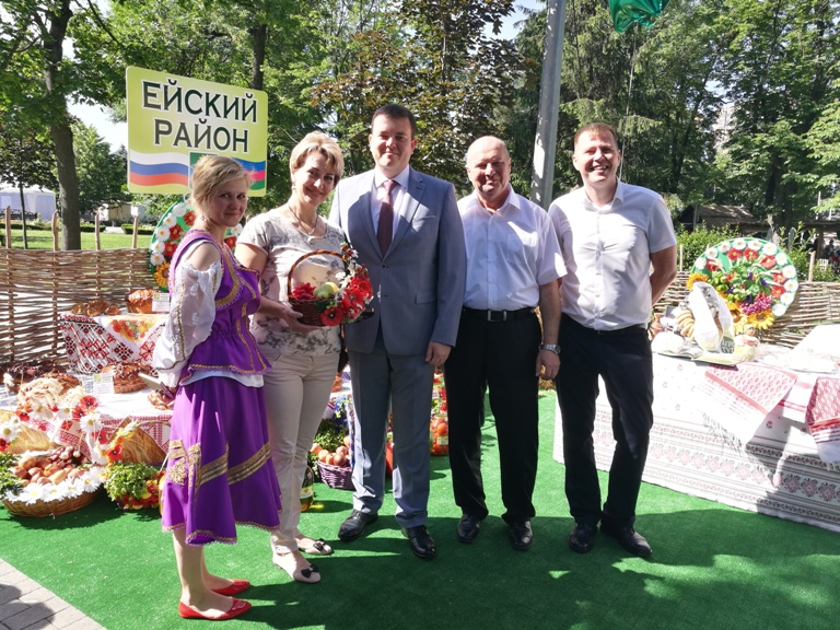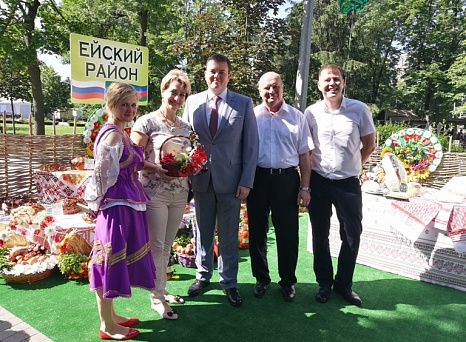 В Краснодаре на площади около Законодательного Собрания края Ейский район в числе 44 муниципалитетов региона представил на своем кубанском подворье ярмарку мастеров декоративно-прикладного искусства, блюда, приготовленные из продуктов местных производителей. Здесь же можно было познакомиться с презентациями курортной отрасли района и объектов сельского (аграрного) туризма. Это направление, активно развивающееся на Кубани, представили традиционный не только участник, но и призер различных краевых выставок - этнический центр п. Морской «Кубанский хутор» ИП Деренченко В.В. и новый проект винного туризма, который реализует в Ейском районе ООО «Приазовский винный дом».