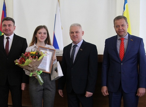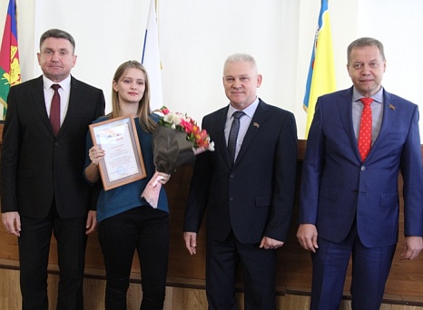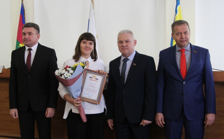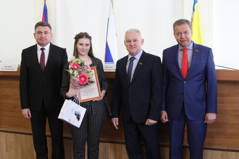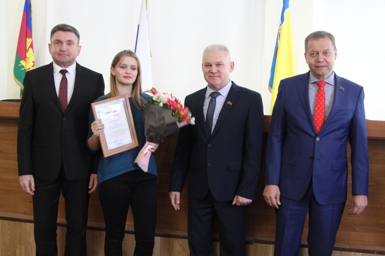 Сегодня в ходе планерного совещания глава Ейского района Виктор Ляхов, депутат ЗСК Сергей Белан и председатель Совета МО Ейский района Олег Вяткин наградили призеров и победителей конкурса «Лучший молодежный бизнес – проект». Дипломом третьей степени за разработку бизнес-проекта «Переработка стеклянных отходов в плитку «Блестящий бизнес» была награждена студентка филиала ФГБОУ ВО «Ростовский государственный экономический университет (РИНХ)» в г. Ейске Татьяна Головачева. Диплома второй степени был удостоен автор работы «Переработка опасного промышленного отхода золы лузги подсолнечника с производством поташа К2СО3» - ученица гимназии №14 города Ейска Наталия Сидорова. Победителем конкурса и автором лучшего молодежного бизнес-проекта «Мини-завод по переработке пластика в гранулированную крошку и изготовления нового строительного материала» стала студентка Ейского полипрофильного колледжа Анастасия Кожевникова.