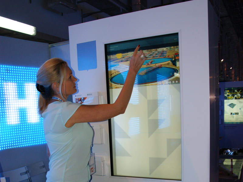 Стоит отметить, что макетов в этом году стало заметно меньше. Большая часть проектов переместилась в виртуальную реальность: пластиковые и картонные здания и сооружения сменили мультимедийные интерактивные экраны, расположенные вдоль экспозиций муниципальных образований, в том числе и Ейского района.